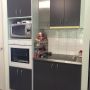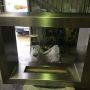 This stainless steel bench extended past the wall space to utilise the room available. It had a heated shelf for plated food.