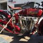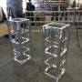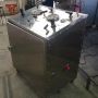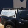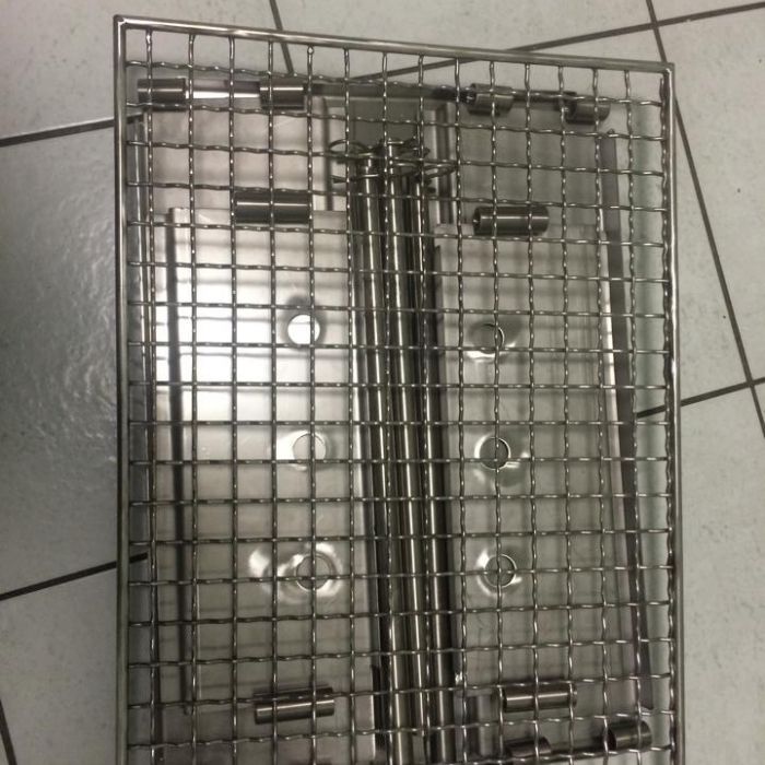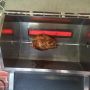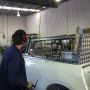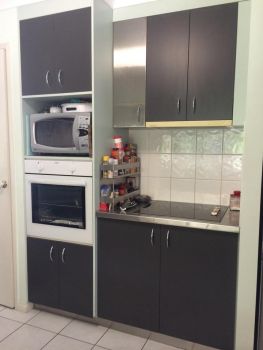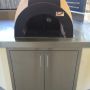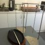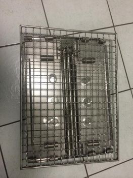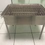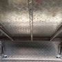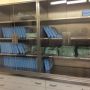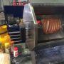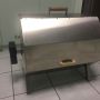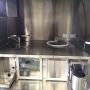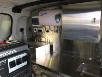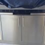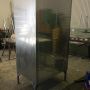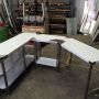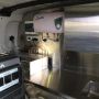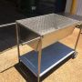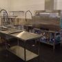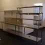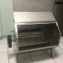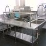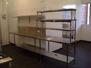 This stainless steel bench extended past the wall space to utilise the room available. It had a heated shelf for plated food.